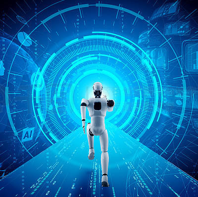 测绘机器人在城市中作业,更新城市地图的道路数据。